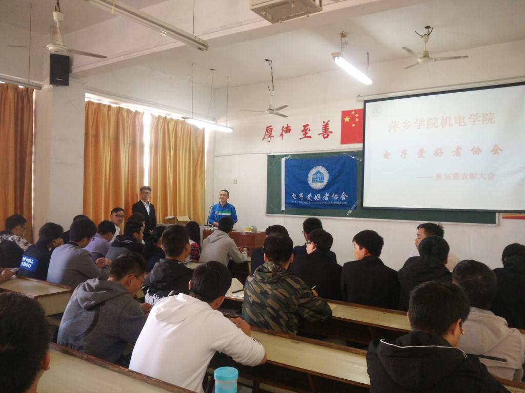 2018年11月1日中午,机电学院电子爱好者协会2018年度换届大会于鼎新楼2314教室顺利举行。协会指导老师胡子健老师出席,协会会长徐家龙、各部门部长助理及18级电协新成员参会。