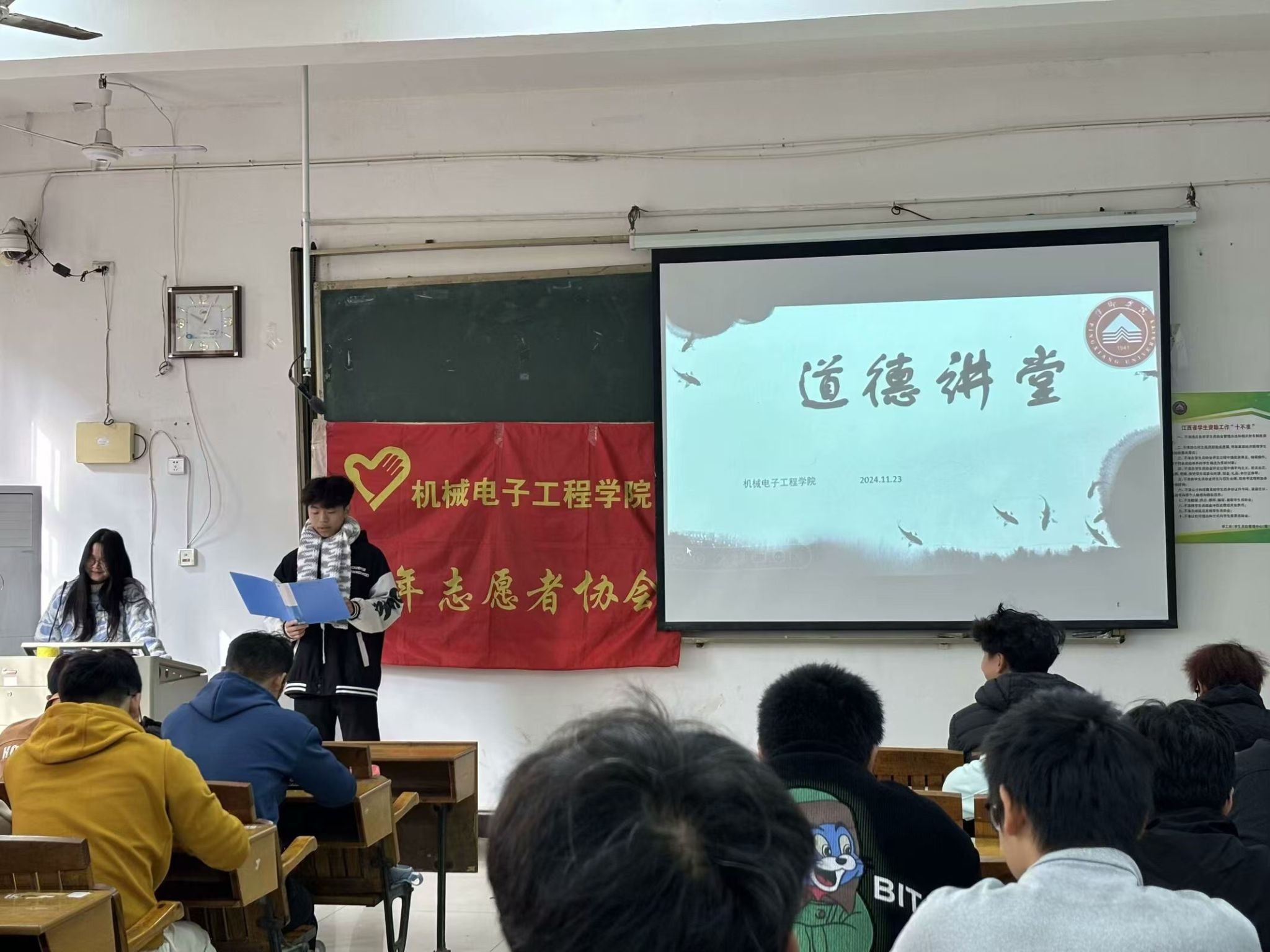 为进一步弘扬社会主义核心价值观,激发青年志愿者的社会责任感和奉献精神,2024年11月23日,yl23455永利集团在鼎新楼2313教室开展了以“崇德向善,爱满人间”为主题的道德讲堂活动。机电学院青协及2024级部分新生参加了本次活动。