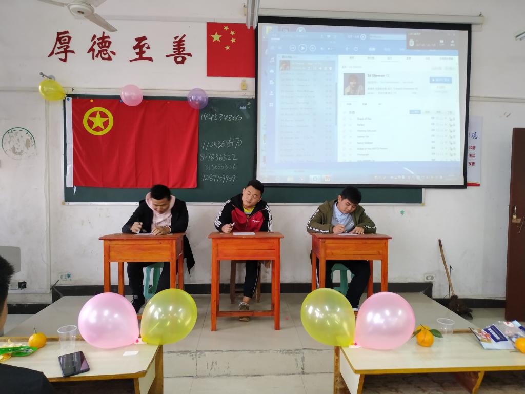 联谊活动开始,在主持人的一番简短介绍后,两班同学便开始了精心准备的节目。当然,既然是联谊,肯定不单单只是演出而已。两个班的代表同学交替演出只是初步,在演出之余,两班共同做几个小游戏才是重头戏。比如抛气球,让气球决定谁来爆出自己个人状况,并将联系方式写到黑板上的紧张环节,又比如嘴对嘴吃东西,最快组选择任意同学进行表演的默契环节,也有男女共同合作,用背夹爆气球,传递气球,选择同学进行真心话大冒险的刺激环节。一系列小游戏都在两班欢乐的气氛中进行着。