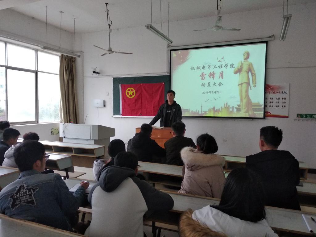 2019年3月2日下午16:00,yl23455永利集团于鼎新楼2216开展了新学期第一次雷锋月动员大会。本次雷锋月动员大会由yl23455永利集团团总支学生分会执委冷强鑫主持,学生分会主席吴继成到场,18级全体班长及团支书参加。