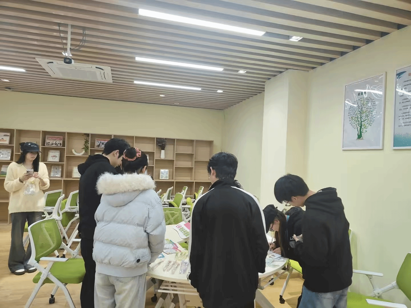 活动现场布置温馨治愈,各类精致小巧的物件整齐摆放,心愿展板静待寄语。活动伊始,同学们踊跃参与,自由挑选代表自身性格、态度与期许的小物件,在轻松愉悦的氛围中敞开心扉。大家拿起便签与笔,认真写下对自己的期许、近期目标、心情感悟与未来祝福,将内心的温暖与力量凝于笔端。