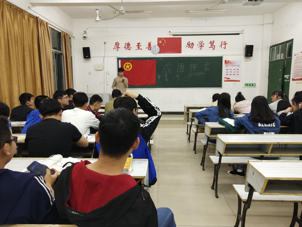 中华文化博大精深,源远流长。为丰富同学们的日常交流需要和写作需要,18电信二班于4月11日晚上七点在英华楼开展一次成语接龙大赛。