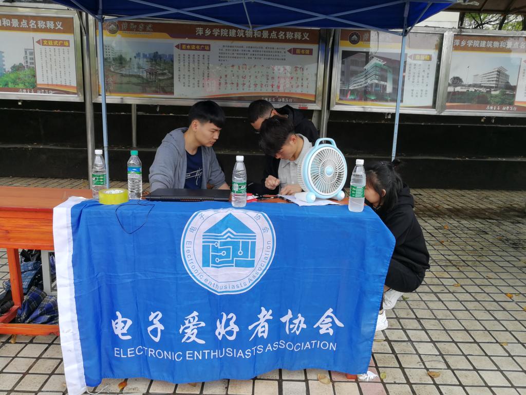 2019年4月13日上午,机电学院电子爱好者协会在中心小广场举办了以“技术出机电,义务维修行校园”为主题的义务维修活动,为全校师生免费维修各类小型电子产品,此次活动长达8小时。此次活动由电子协会会长带领协会成员参与。