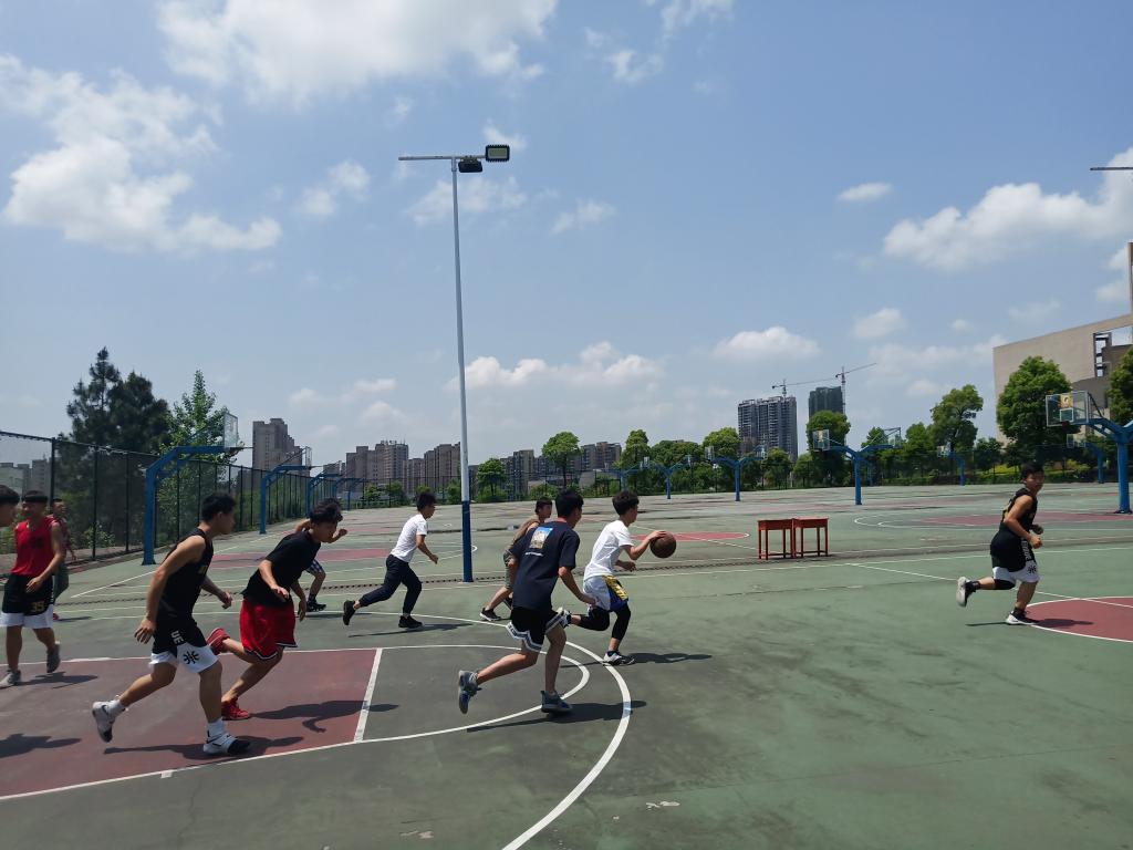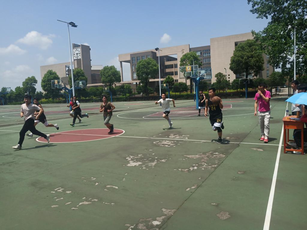 一声哨响将拉开了比赛序幕。首先,18电信队先以一个帅气的三步上篮率先得到两分,18机设队不甘落后,立马以一个三分球将局势拉回来。在头顶着大太阳的情况下,参赛队员们依旧全力以赴投入比赛,在赛场上挥洒汗水,用心防守,有力阻挡,为自己的班级争得荣誉。一个个帅气的跳跃为自己的队伍加了一分又一分。比赛慢慢的进入了白热化阶段,双方拼抢很激烈,一个又一个三分球准确无误的进入了球框,引得在场的观众阵阵惊呼。最终18电信队以37:65惜败18机设队。