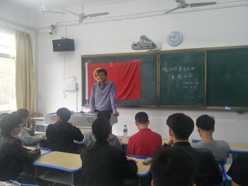 2019年4月20日11点40分,机电学院17电信一班在英华楼3131举行了一次以“我为评建做贡献”为主题的班会,参加本次班会共有41名17电信一班的小伙伴。