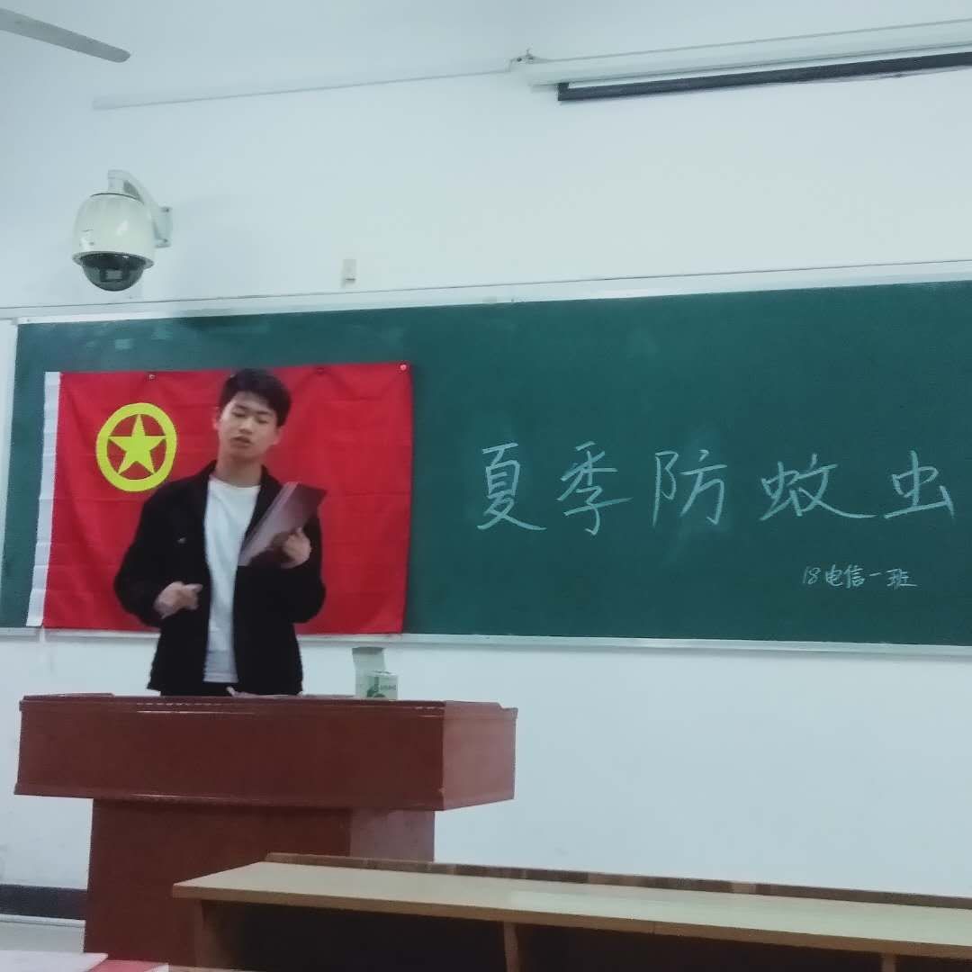 夏季来临,环境卫生问题一直是我们关注的问题,许多人因感染而生病。因此,为营造良好的生活和工作环境,确保教师和学生的身心健康,18电信1班在鼎新楼 2608教室举行“趣味夏日防蚊虫”安全知识演讲。