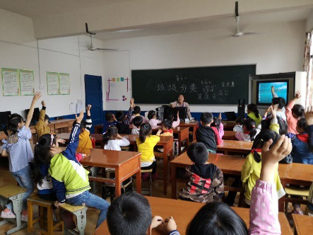 在大环境中,人们在生活生产中会产生大量的生活垃圾,所以有关垃圾的分类和处理十分重要。我们的支教小伙伴播放了综艺节目《奔跑吧,兄弟》中有关垃圾分类的片段作为切入主题,向孩子们讲诉了垃圾处理的现状、垃圾的分类以及如何做好垃圾的分类。孩子们都十分认真地听讲,并对有关知识的接受,对不懂的问题也有了一定了解。为了加深孩子们对垃圾分类认识,我们的志愿者们还让孩子们做“萝卜蹲”游戏,每个人说一个垃圾分类的名字来进行游戏。孩子们在游戏中学习,在欢声笑语中成长。垃圾分类,从小做起,从我做起。