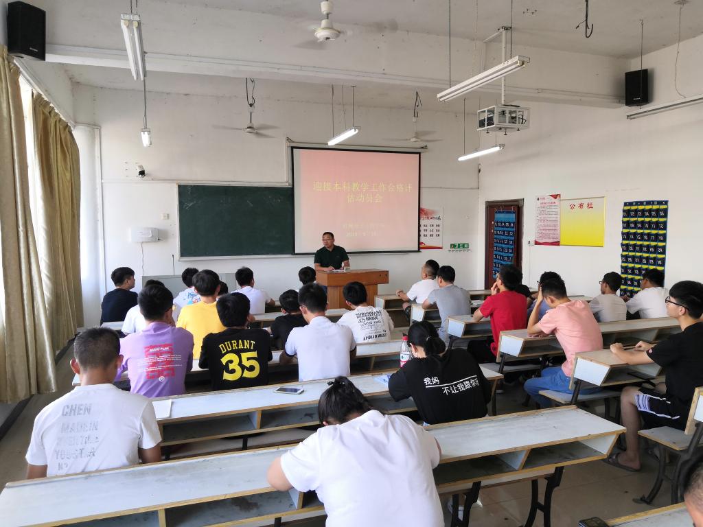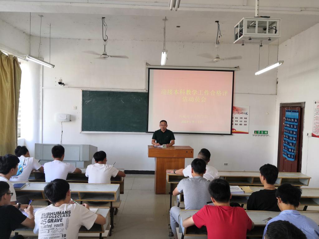 为迎接教育部本科教学工作合格预评估,机电学院于2019年9月19日下午在鼎新楼2216召开迎评动员大会,机电学院党总支副书记王立平出席会议,机电学院各班级班长、学生会各部门部长及执委参与。会议由童乐主持。
