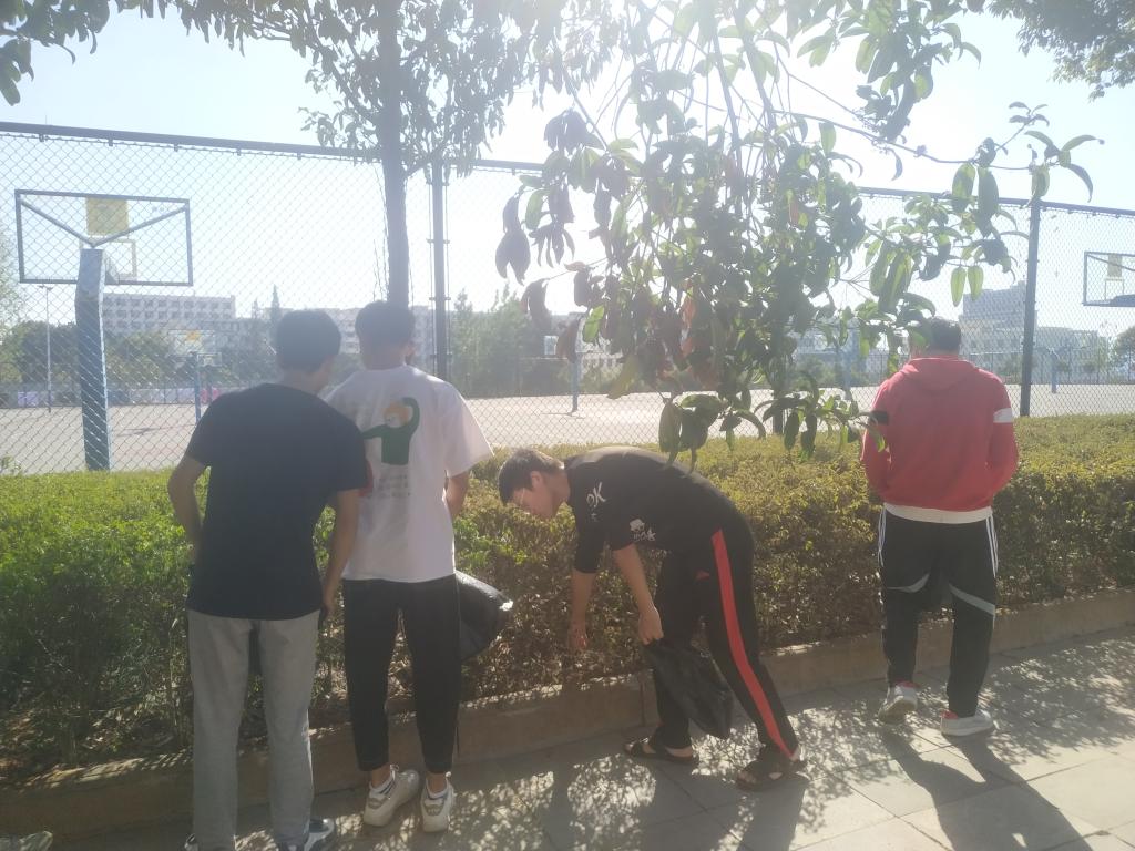 为配合学校进行“垃圾分类”工作,美化校园环境。18电信二班全体学生于2019年10月21日下午于校园内进行了“清理校园,垃圾分类”活动。