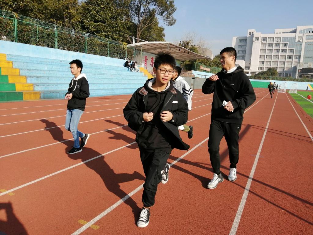 清晨八点,阳光明媚,一缕缕阳光普洒在每一个同学的脸庞上,但依然是阵阵寒风来袭,让人感到了寒冬的到来。在班长的带领下,晨跑活动拉开了序幕。一圈两圈,距离目标三圈仅剩一圈,但有些同学已经开始有些体力不支,脸上也开始流出汗水,疲惫的双腿拖着沉重的双腿前行,但他们压紧牙关,继续前行。努力到无能为力,拼搏到感动自己。这样这个集体的凝聚力更高。当星星之火成为燎原之势时,再困难的的困境,相信我们也能笑着度过难关。一次的晨跑不仅仅是锻炼同学们的体魄,也是在磨练自己的意志,相信他们会在以后的道路越走越远。