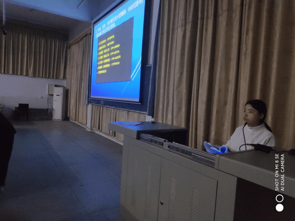 首先,宿管会成员刘风为我们讲解了各种火灾的危害以及各种防火救火的方法,增强财产及自身的保护能力,向大家传授预防新冠肺炎的重要性及平时生活所需注意的细节,例如:在寝室日常生活中需要勤洗手和消毒,不随意串寝,每天保持开窗通风,在外与他人至少保持一米之距。之后,宿管会成员介绍了寝室卫生及寝室卫生例检、抽检的评分标准,也对星级寝室、文明寝室评比作出了总结说明。