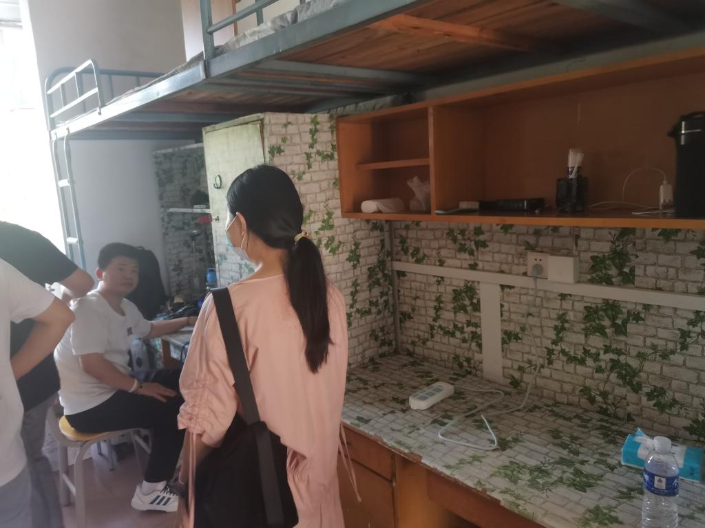 在走访中,黄老师详细了解了同学们的住宿和生活情况,空调安装情况,是否有需要维修的东西,关切地询问了学生们的生源地以及是否适应学校生活等问题。同学们也主动向老师问好,并积极与他们交流互动。随后,对寝室学生进行了安全教育,针对学校关于新生开学近期的工作安排与学生进行沟通交流,重点强调了疫情期间的注意事项,并了解了新生入住寝室的感受以及宿舍的硬件设施情况。最后,她还鼓励同学们要尽快完成角色的转换,适应大学生活,对未来做出合理的规划。