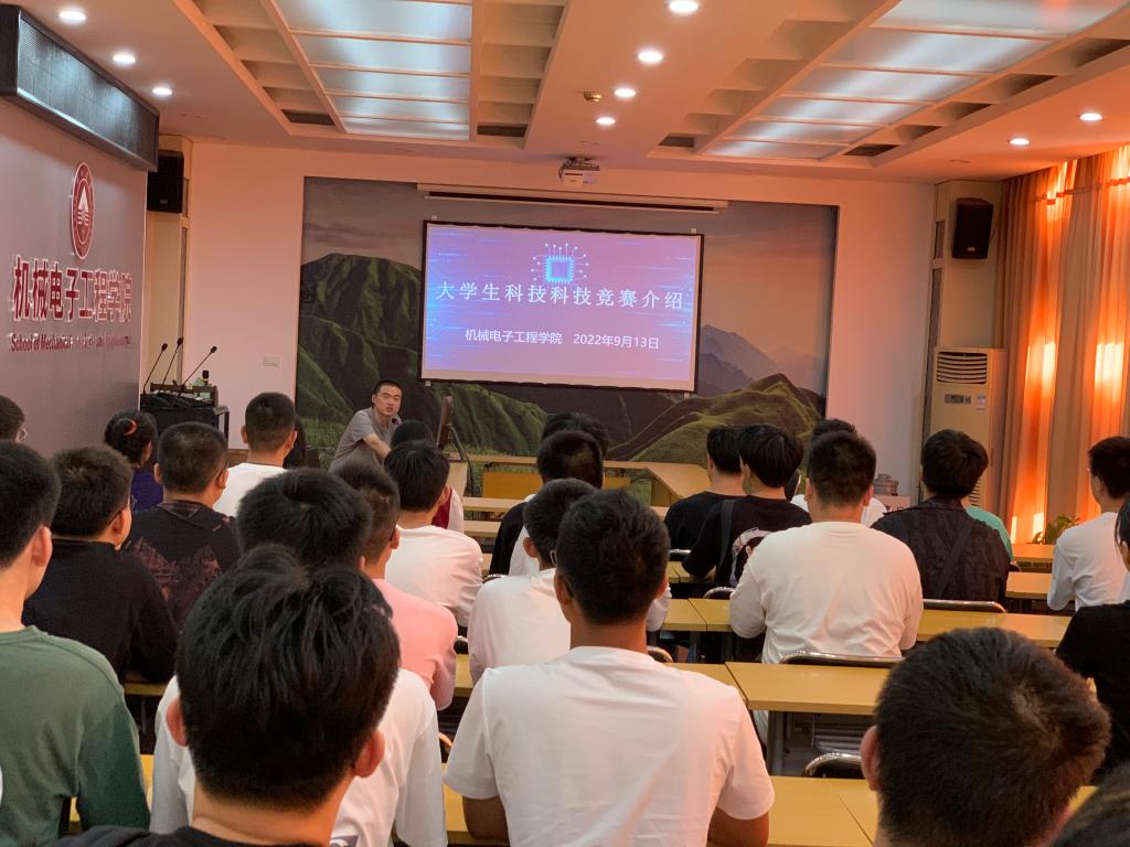 为进一步推动外机电学院创新创业工作和大学生科技文化竞赛工作,更好地培养创新型应用型人才,为2022级新生提供了解竞赛,认识创新的平台。机电学院于9月13日在鼎新楼会议室组织举办了100余名同学参加了本次讲座,讲座由胡子健老师主讲。